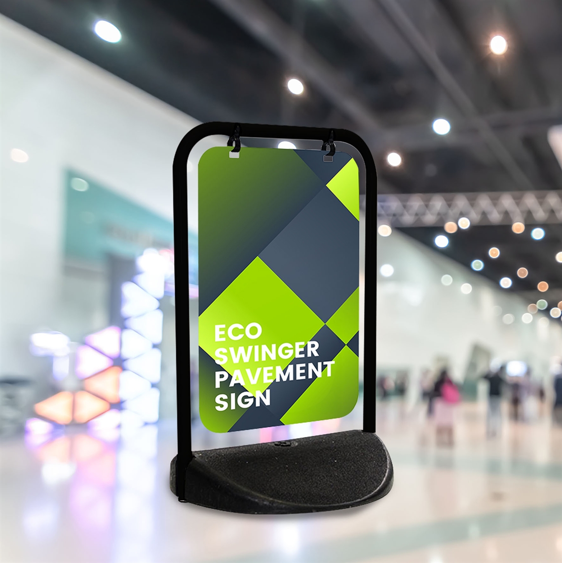 Eco Swinger Black is an excellent way to promote shops and restaurants. It includes a full colour graphic on both sides, with the option of replacement panels.